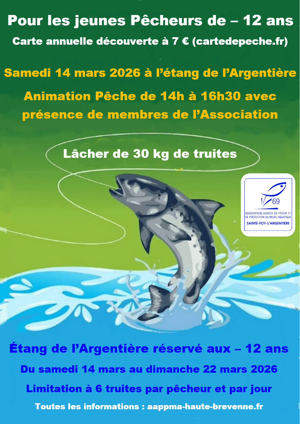 Dans le cadre de notre politique en faveur des plus jeunes, nous organisons pour eux (carte annuelle découverte – 12 ans à 7 €) à l’étang de l’Argentière : – …