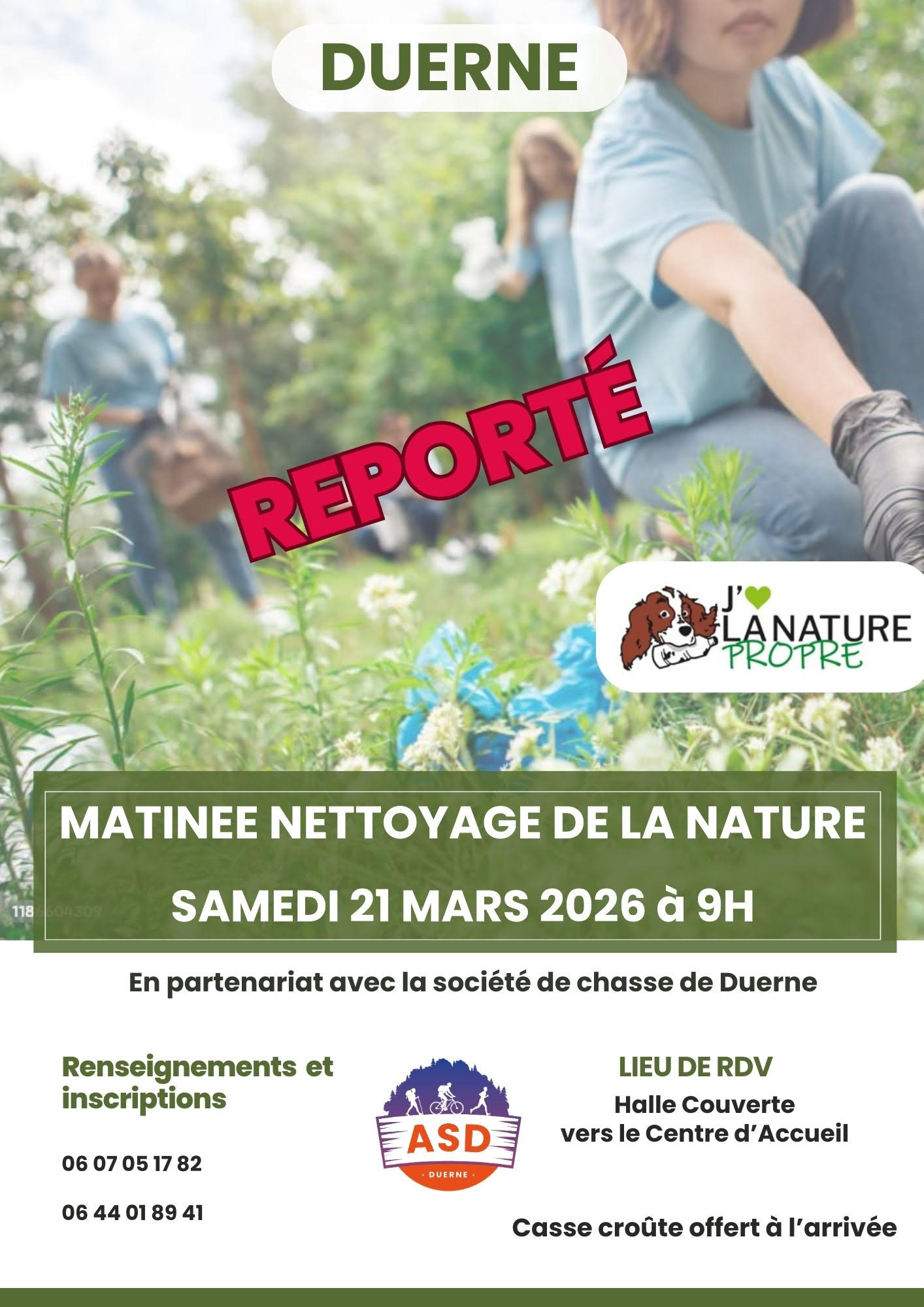 Au vu de la météo, le « nettoyage de la nature », en partenariat avec la société de chasse de Duerne prévu ce samedi 14 mars 2026 est reporté au 21 mars 2026 – …