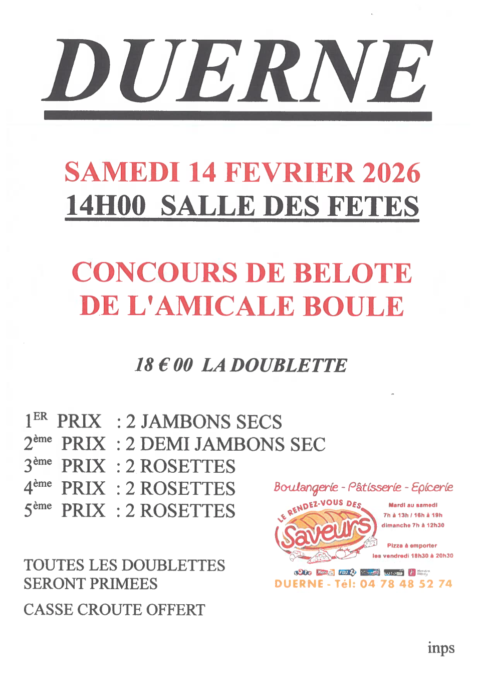 le samedi 14 février 2026  à 14 h  salle des fêtes