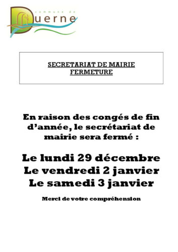 le secrétariat de mairie sera fermé